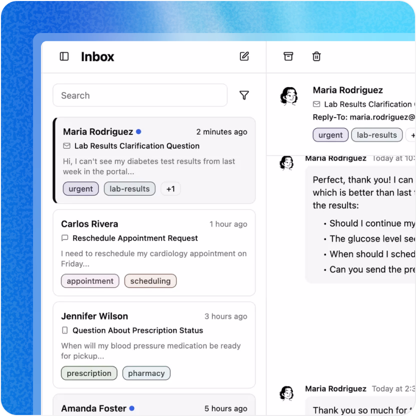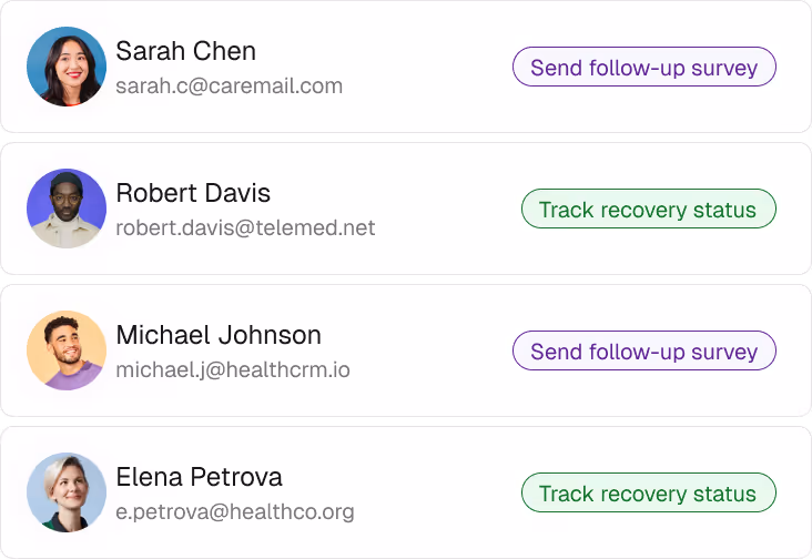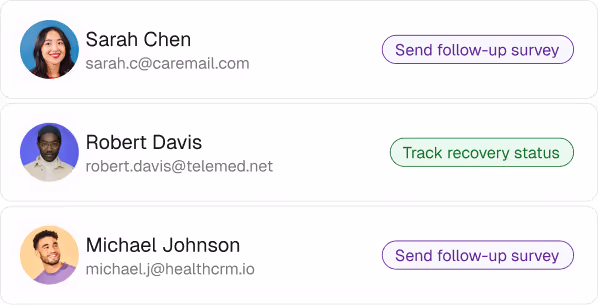 Automate appointment reminders, follow-ups, and instructions. Create smart communication routes that adapt to patient responses