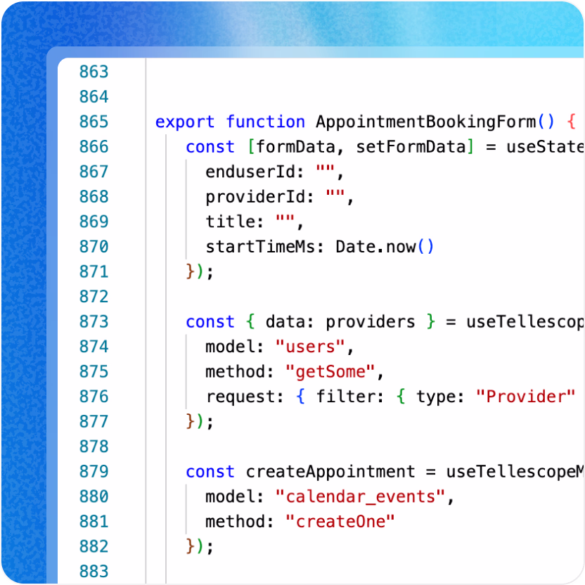 Build fully custom care team and patient-facing interfaces while leveraging Tellescope's backend infrastructure for data and workflows