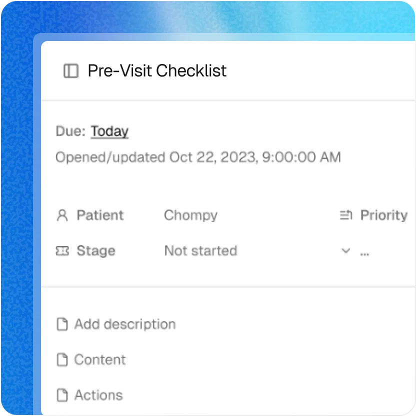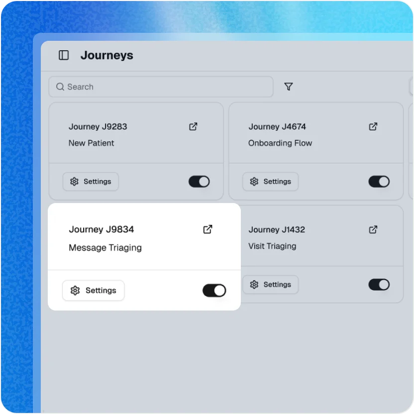 Automate appointment reminders, follow-ups, and instructions. Create smart communication routes that adapt to patient responses