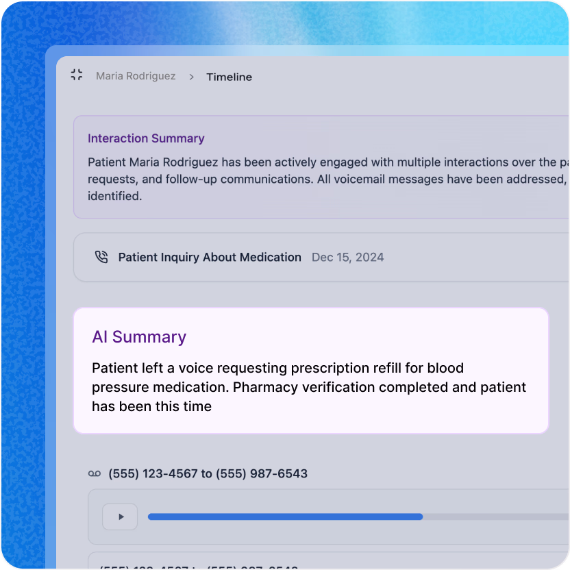 Maintain patient conditions, medication lists, and communication history so that your team has full context when intervention is needed