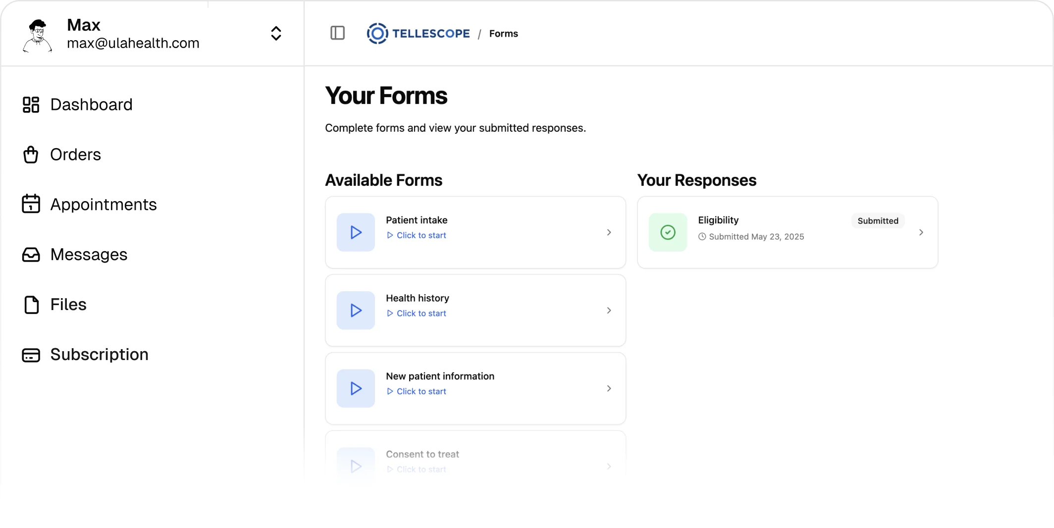 Patients expect a modern and convenient digital experience. Tellescope provides secure and intuitive forms that patients can complete from any device at any time