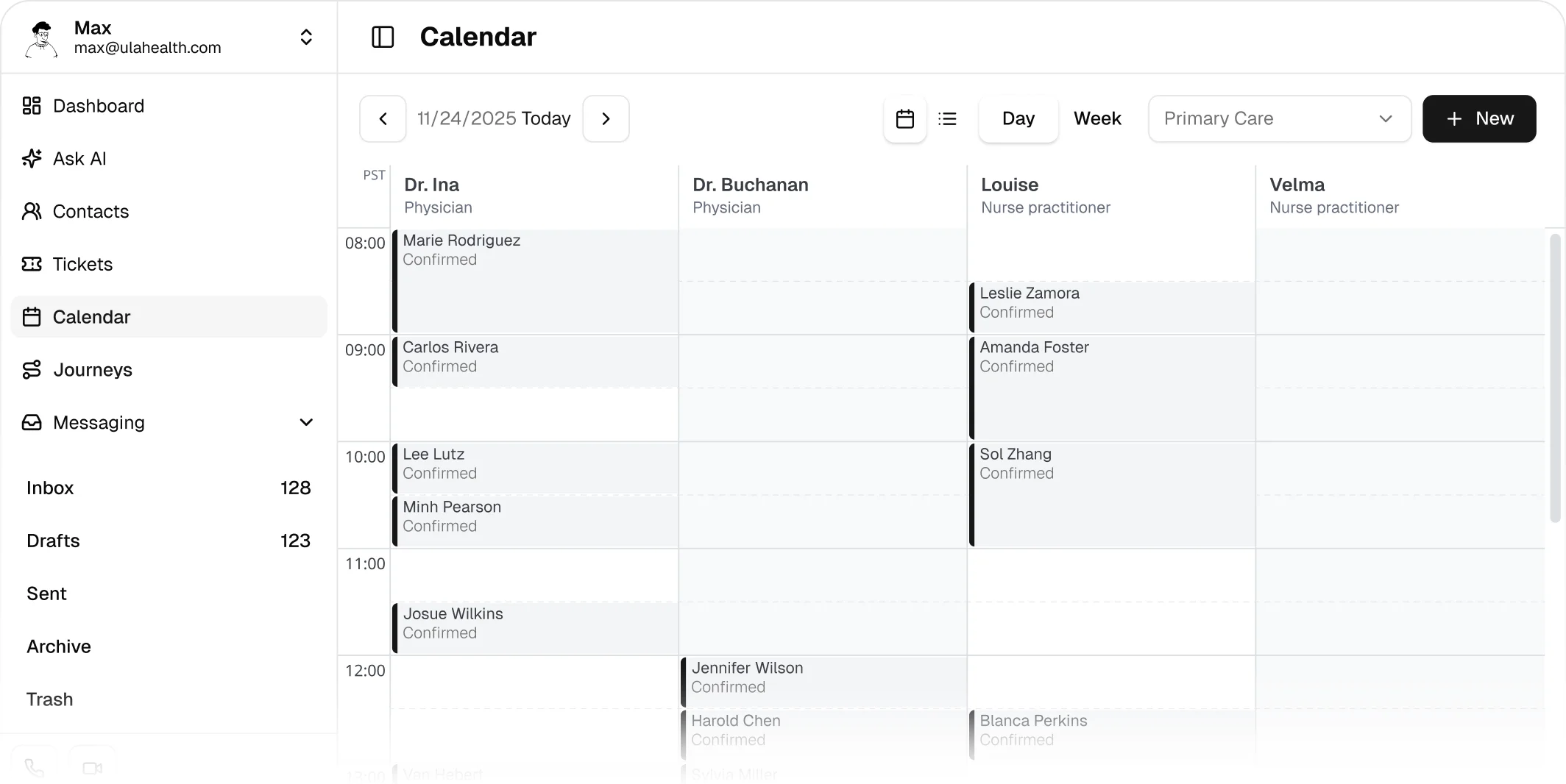 Appointments instantly sync to patient profiles, send calendar invites, and start a sequence of automated reminders