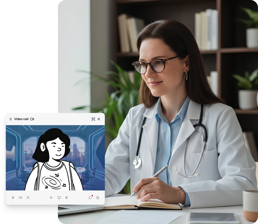View patient records, document notes, and send prescriptions or follow-ups without leaving the video call